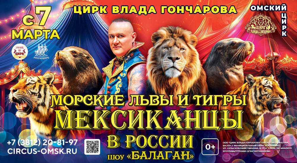 С 7 Марта! ВПЕРВЫЕ в Омском цирке! Хуан Карлос, львы и тигры! Яркое цирковое шоу «БАЛАГАН» «ЦИРК ВЛАДА ГОНЧАРОВА»! Вся история Российского цирка в двух актах.