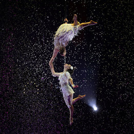 - Воздушные гимнасты на ремнях Виктор Катунин и Диана Петрова.