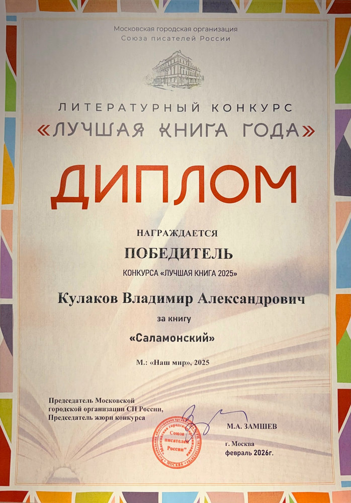 Владимир Кулаков сумел создать глубокую и эмоционально насыщенную книгу, которая вдохновляет читателя на размышления о собственной жизни, устремлениях и ценностях. "Саламонский" - это история о страсти, упорстве и вечном поиске истины. Это книга о вечном! А вечное это - Цирк! Книга - великая вещь, пока человек умеет ею пользоваться.
